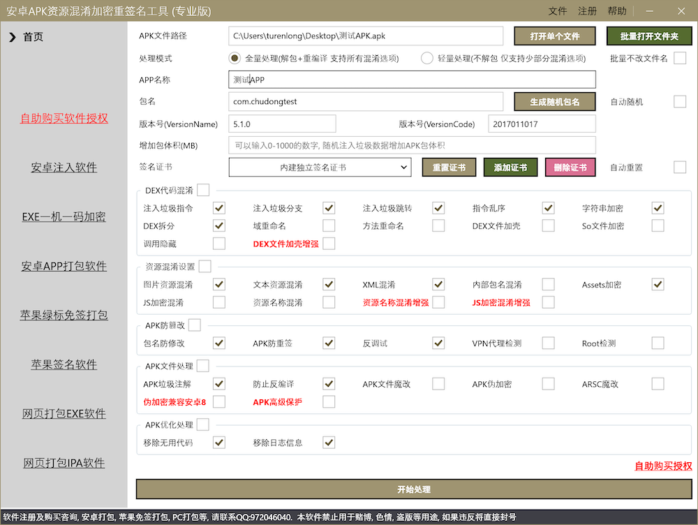 安卓APK混淆加密重签名软件,可以对安卓APP进行混淆加固加密处理,对代码和资源文件进行混淆,进行重新签名等. 可以保护APK,增加逆向分析难度等.
