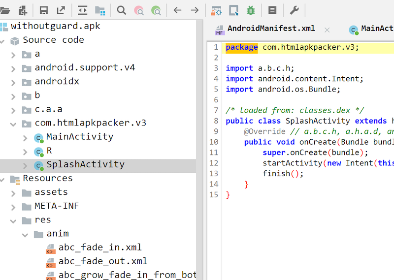 1. 首先准备好开发好的APK文件,我们先不加固,拖到反编译软件里看看效果